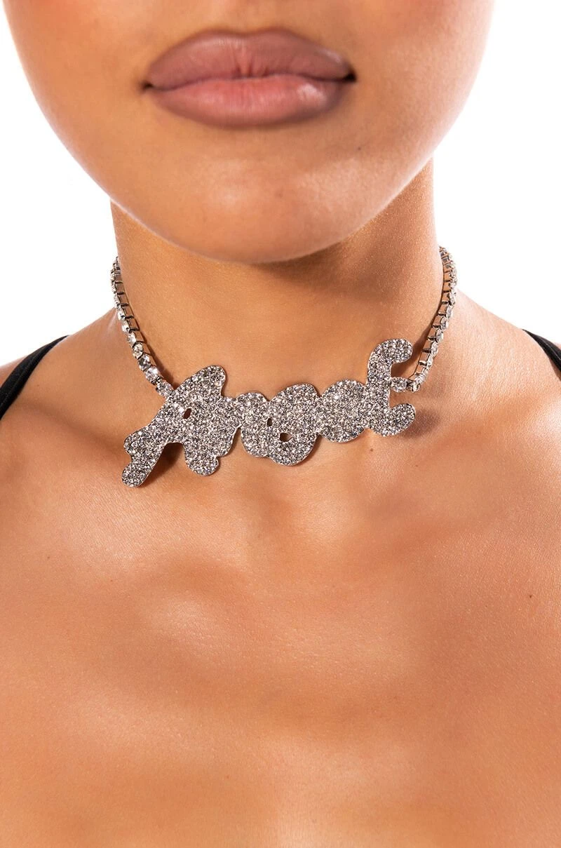 They’ll think you’ve fallen from heaven with The AKIRA Label Angel Drip Necklace! This blinged-out piece is made from a faux silver base and features a rhinestone link chain, a rhinestone-embellished “Angel” script pendant, and an adjustable lobster claw closure.
