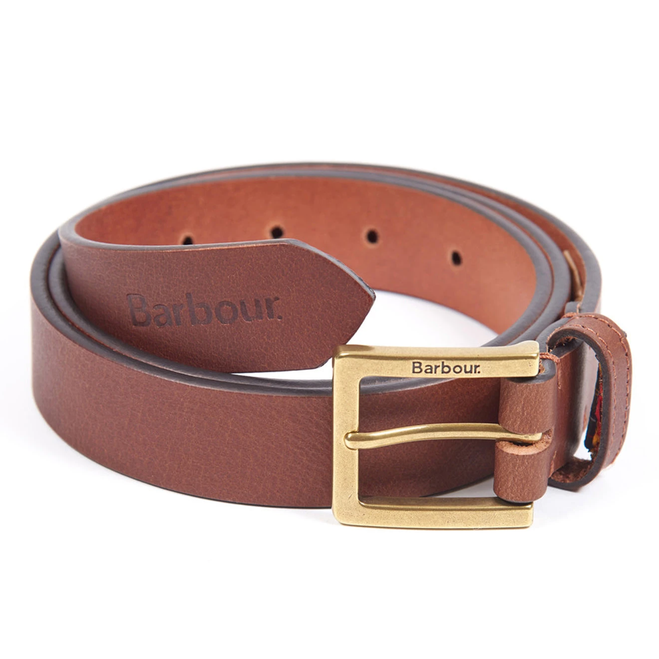The Barbour Pull Up Leather Belt is 3cm wide, detailed with the embossed Barbour Logo displayed to the tip and engraved on the metal buckle. The keeper loop is trimmed with a Barbour Tartan flag label.