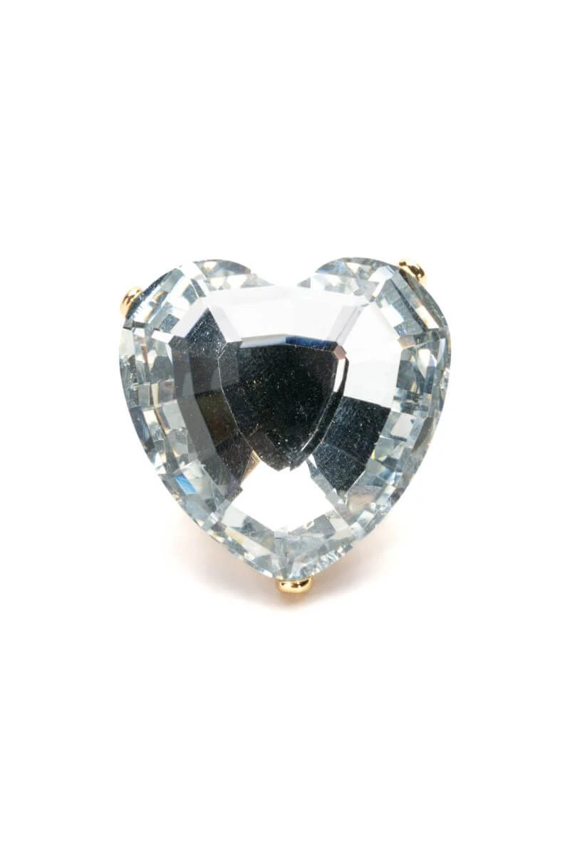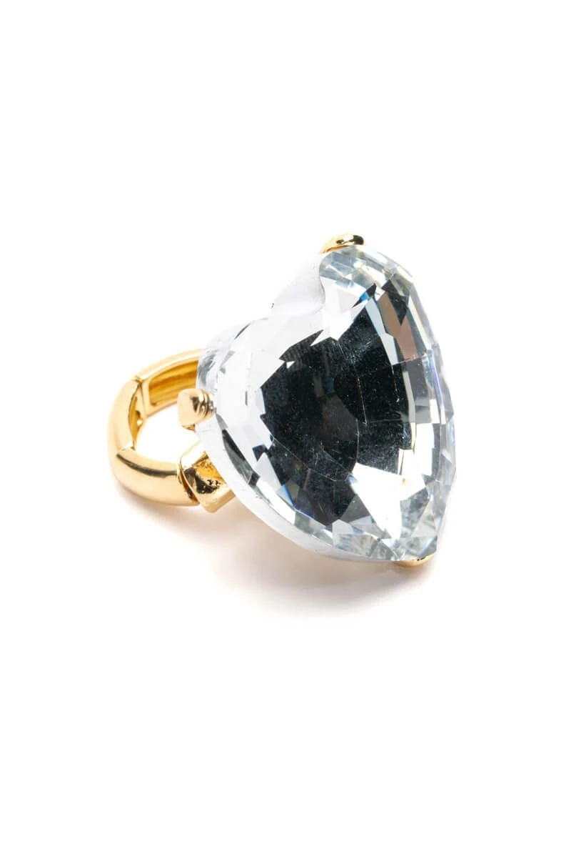 The AKIRA Label Be My Baby Statement Cocktail Ring is made from a faux gold metal base and features a large heart-shaped gemstone with a stretchy back band for a flexible fit.