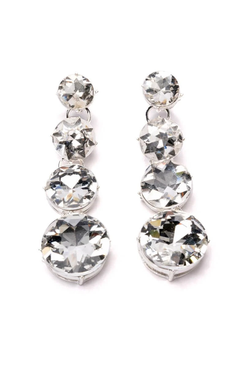 The AKIRA Label Better Believe Embellished Drop Earrings are made from a faux silver metal base and feature a drop silhouette with gem accents of increasing size. Complete with post back fastenings.