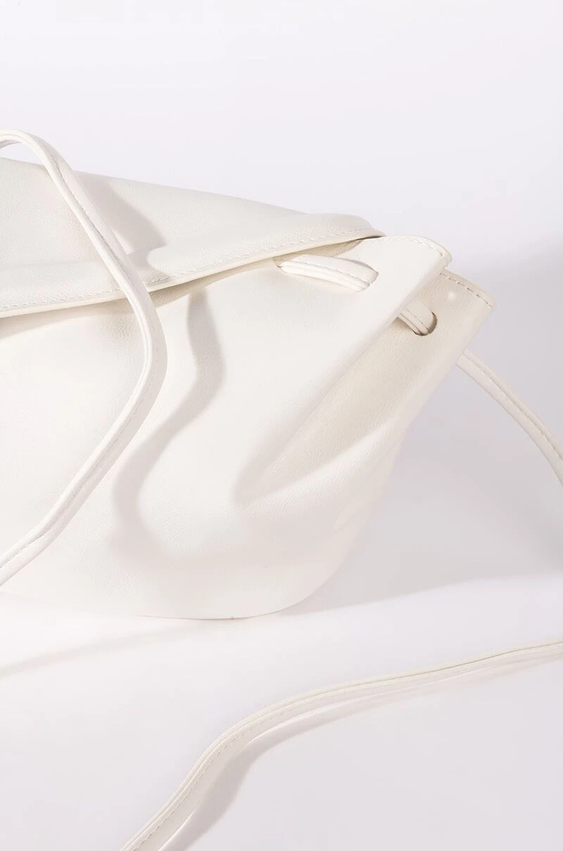 Bird is the word with The AKIRA Label Birdy Beak Flap White Purse. This chic faux leather handbag features a triangular fold over front flap, a mini bucket bag silhouette, and a magnetic inner clasp closure. Complete with a coordinating faux leather shoulder strap.