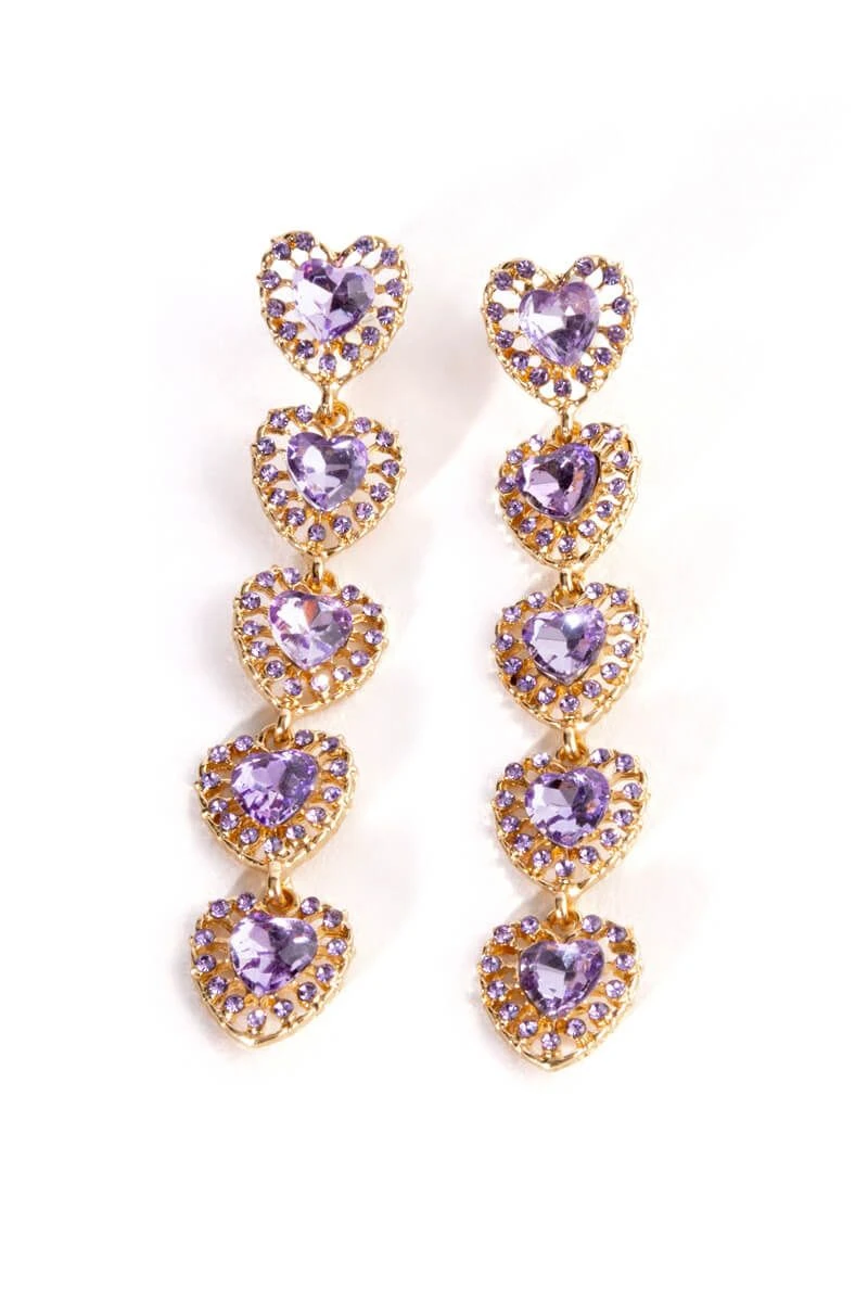 The AKIRA Label Bottom Of My Heart Rhinestone Gem Drop Earrings feature a faux gold metallic base, an elegant drop silhouette, and descending rhinestone gem hearts. Complete with post back fastenings.