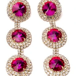 The AKIRA Label Class Act Gem Drop Earrings are made from a faux gold metal base and feature a dangle silhouette with linked pave rhinestone discs with large gem accents. Complete with post back fastenings.