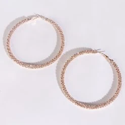 The AKIRA Label Clusters Rose Gold 80MM Rhinestone Hoops are thick 80mm faux rose gold metal hoops with clustered rhinestone detailing and lever back fastenings. Perfect size for adding sparkle to any ensemble!