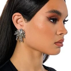 The AKIRA Label Drip Drop Embellished Statement Studs are made from a faux silver metal base and feature a clustered gem and rhinestone lobe post with dangled crystal accents. Complete with post back fastenings.