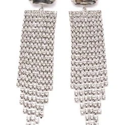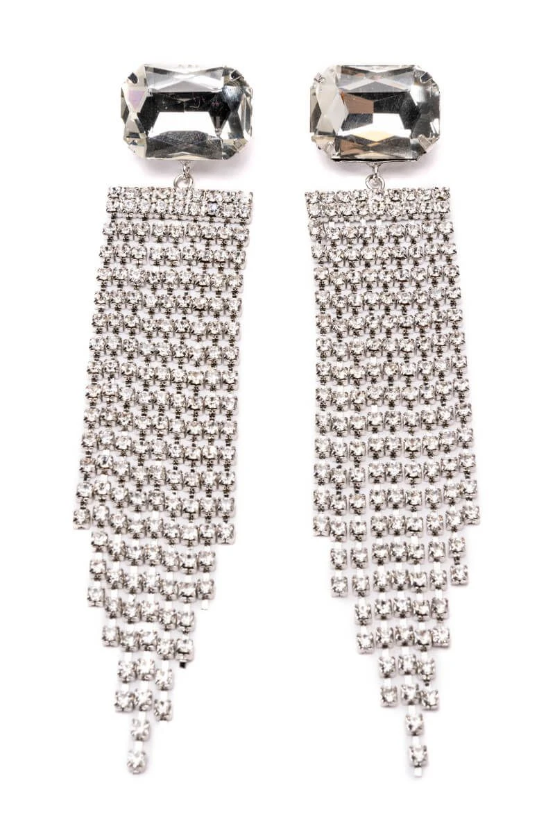 The AKIRA Label Falling Waters Embellished Chandelier Earrings are made from a faux silver metal base and feature a chandelier silhouette with a gem lobe post and a cascading rhinestone fringe drop accent. Complete with post back fastenings.