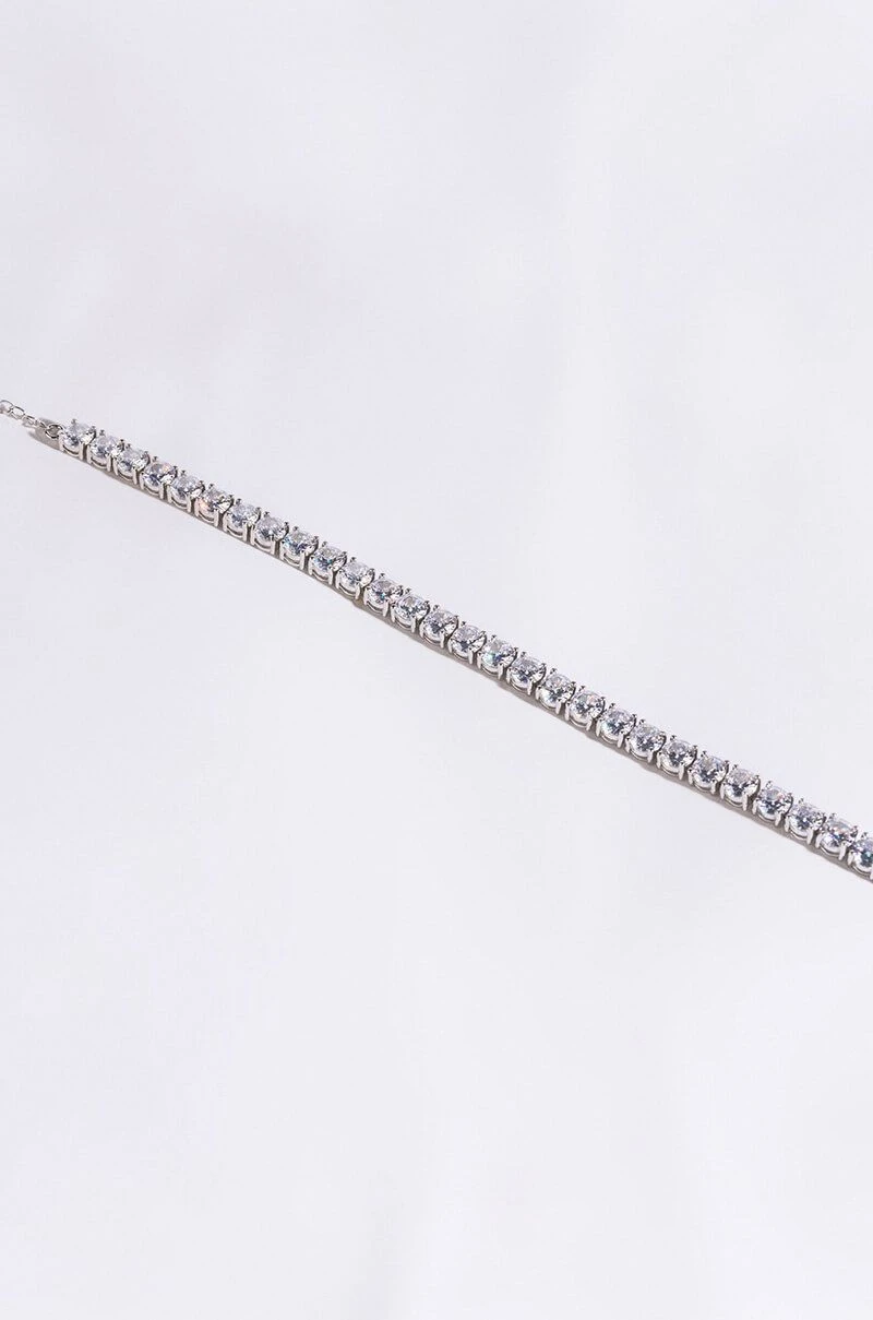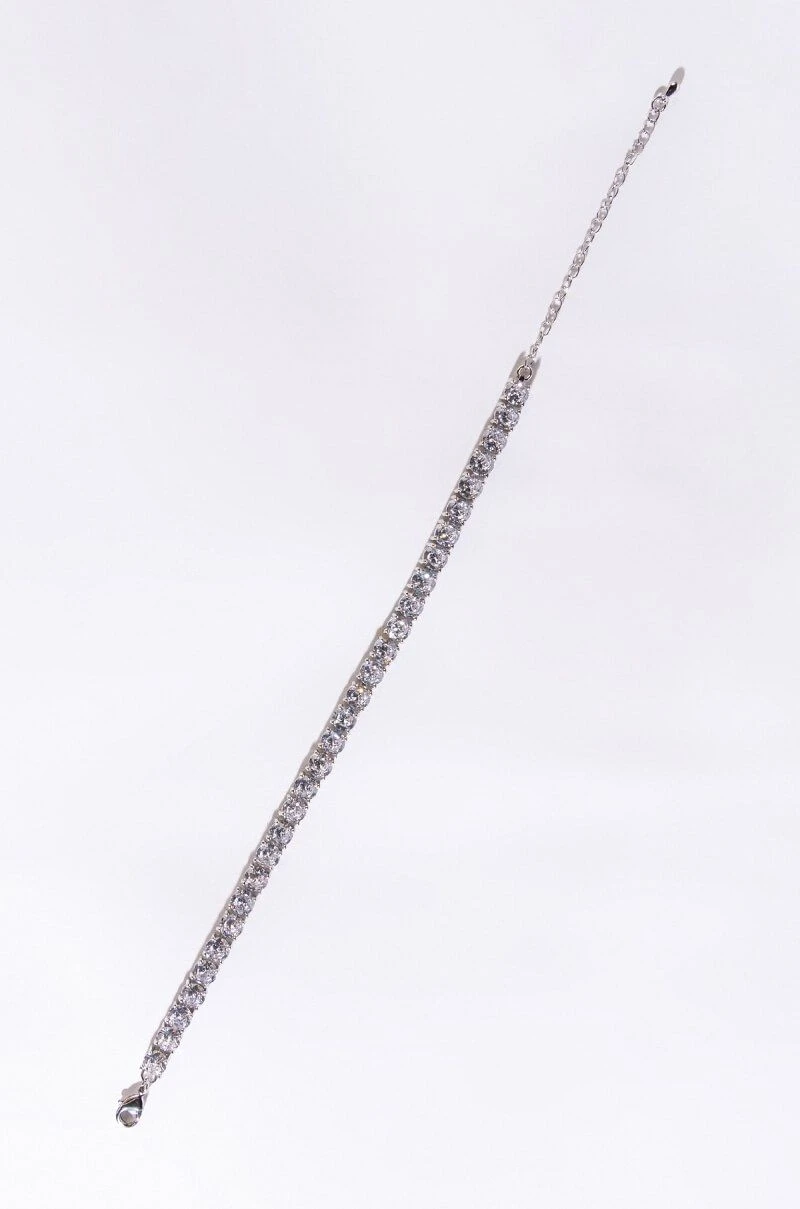 All we need is The AKIRA Label I Want It All Rhinestone CZ Anklet. This rhinestone link piece features a silver base, cubic zirconia link silhouette, and an adjustable lobster clasp closure.