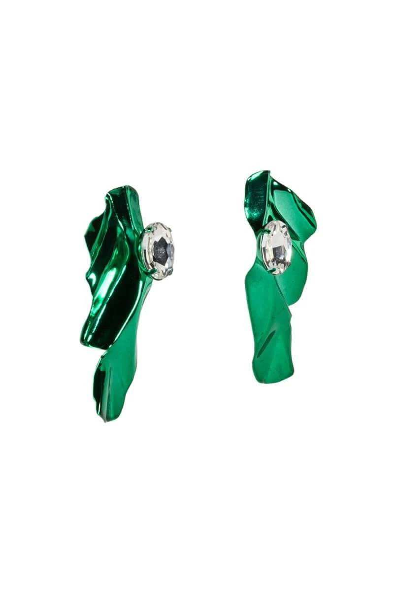 The AKIRA Label Im Jaded Acrylic Drop Earrings are made from a textured metal base and feature an asymmetrical silhouette and a glimmering gemstone embellishment. Complete with push-back style fastenings and a reflective design.