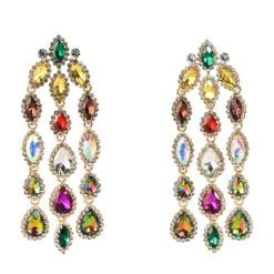 The AKIRA Label In Venice Earrings are made from a faux gold metal base and feature opulent gemstones and a dangle silhouette with a gem lobe post and a cascading rhinestone fringe drop accents. Complete with post back fastenings.