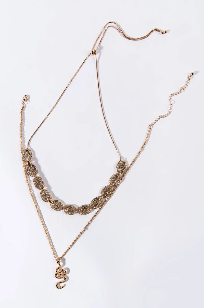 The AKIRA Label Keep’n It Real Necklace Set features two distinct chain link necklaces: one box chain necklace complete with a Gucci link design and an adjustable toggle closure, the other a braided chain link necklace with a rhinestone-embellished snake pendant and an adjustable lobster clasp closure. Wear them separately or style them together for all of the fierce bling!