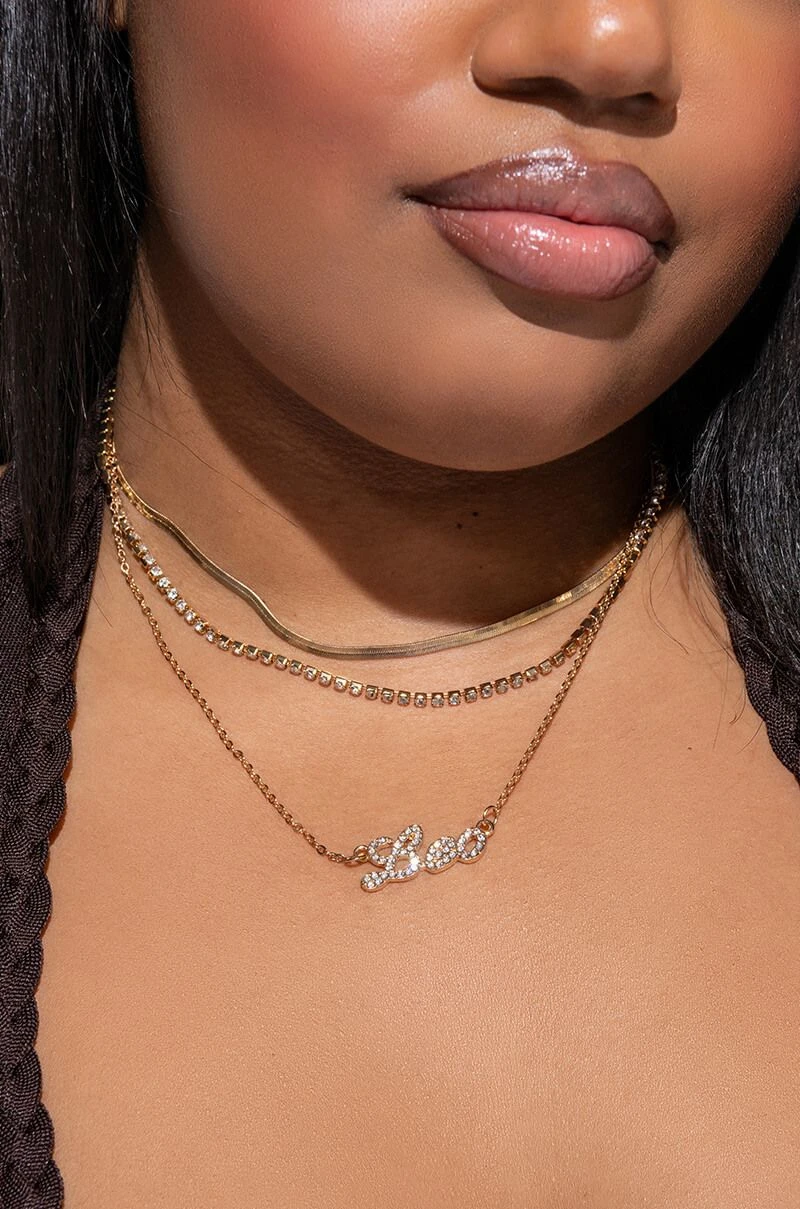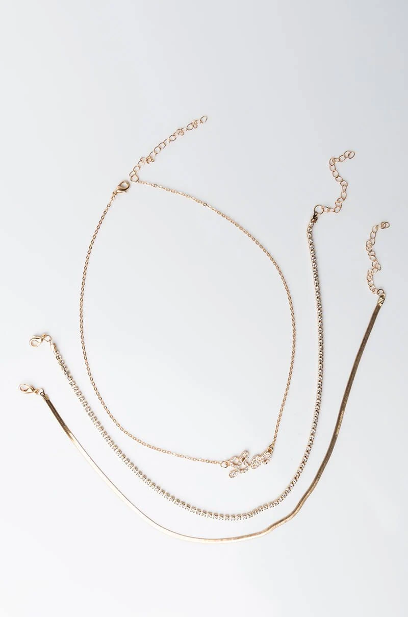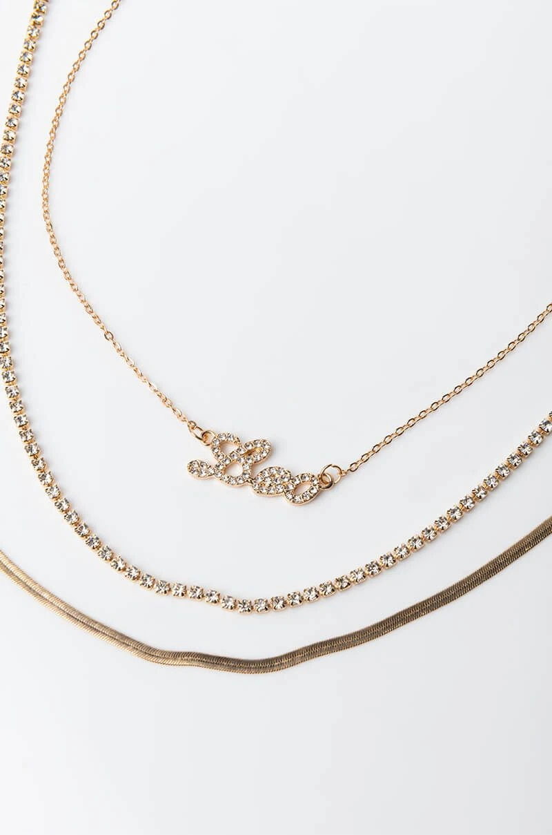 Dainty jewelry with a personal touch, what’s not to love? The AKIRA Label Leo Layer Necklace is a set of three faux gold necklaces featuring link designs, a rhinestone-embellished “Leo” script charm, and lobster claw clasps.