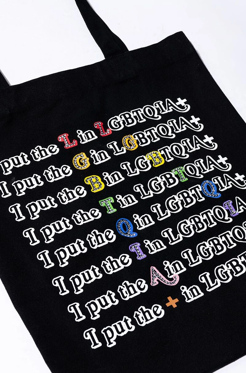 Celebrate the way you love with The AKIRA Label LGBTQIA Oversized Canvas Tote. This top handle tote features a woven body, printed rainbow text detailing, and subtle rhinestone accent. Perfect for pride, shopping, or on-the-go!