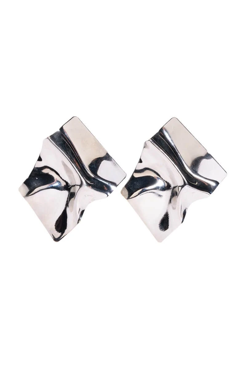 The AKIRA Label Mirror Mirror Oversized Studs are made from a textured faux silver metal base and feature an asymmetrical silhouette. Complete with post back-style fastenings and a reflective design.