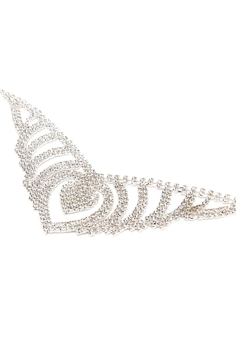 Weβre giving Queen Energy with The AKIRA Label Modern Royalty Rhinestone Necklace! This shimmering statement piece features a silver metallic base, square rhinestone gemstones throughout, a heart pendant with cascading design, choker silhouette, and an adjustable lobster claw closure.