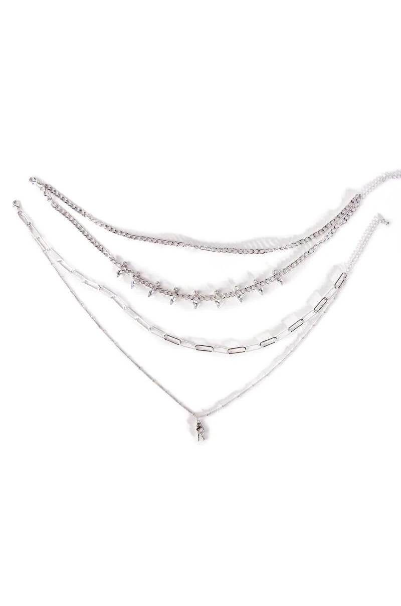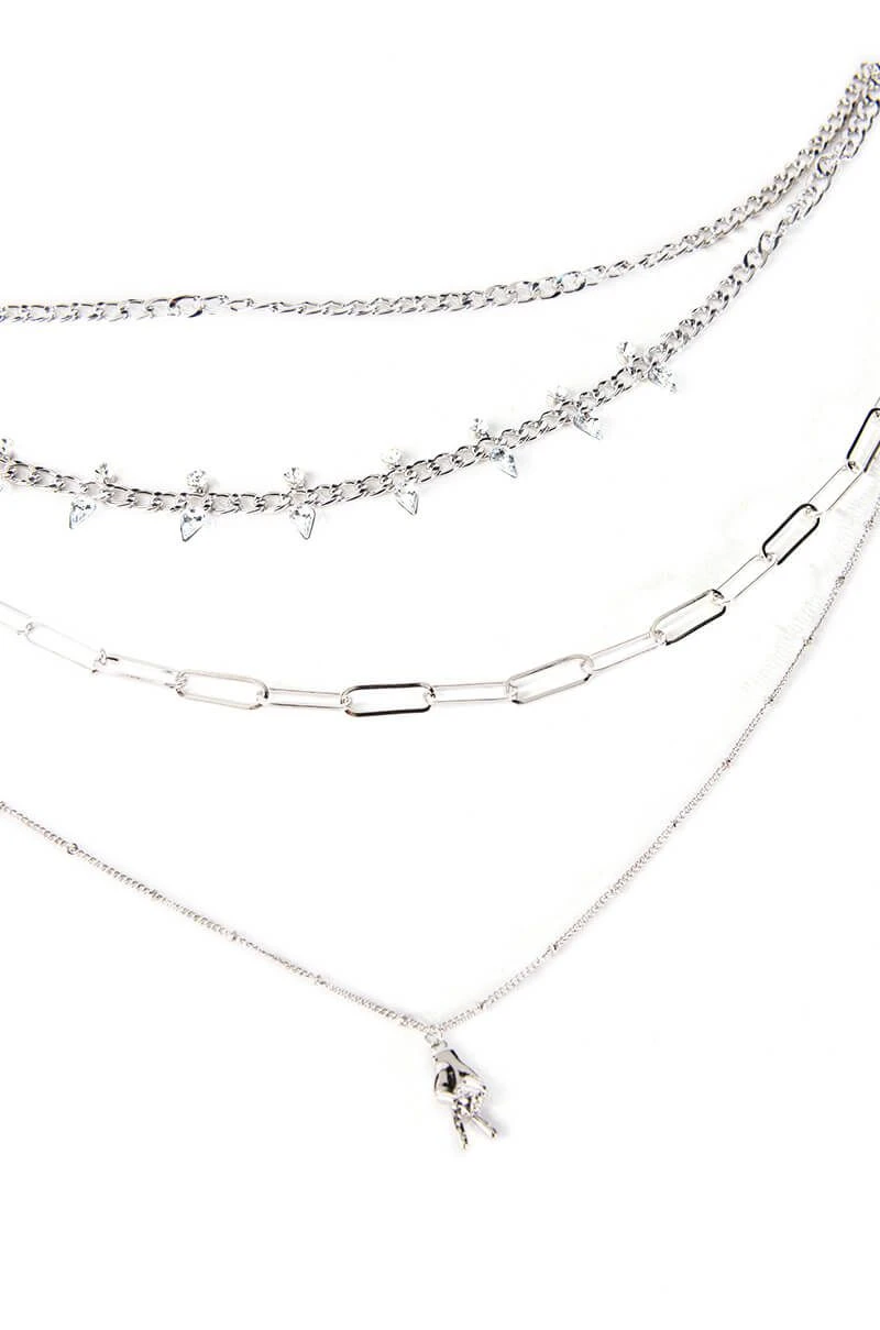 The AKIRA Label Peace Out And Bye Necklace Set features two silver chain link necklaces: a choker-style necklace complete with a paperclip-like chain, a beaded chain, and a peace hand charm. The other is a doubled chain link necklace with rhinestone accents. Both are complete with adjustable lobster clasp closures. Wear these pieces separately or style them together for all of the fierce bling!