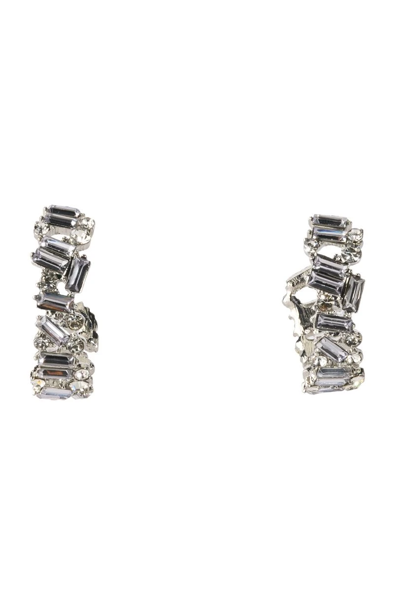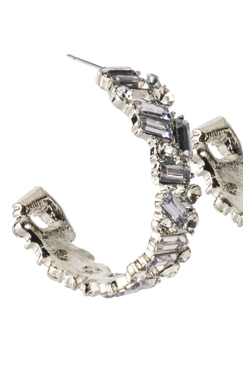 Glimmer and glow in The AKIRA Label Shine Bright Rhinestone Hoops. These silver metallic hoop earrings feature a slightly oversized silhouette, intricate interlocking rhinestone detailing, an open back design, and a traditional push back fastening.