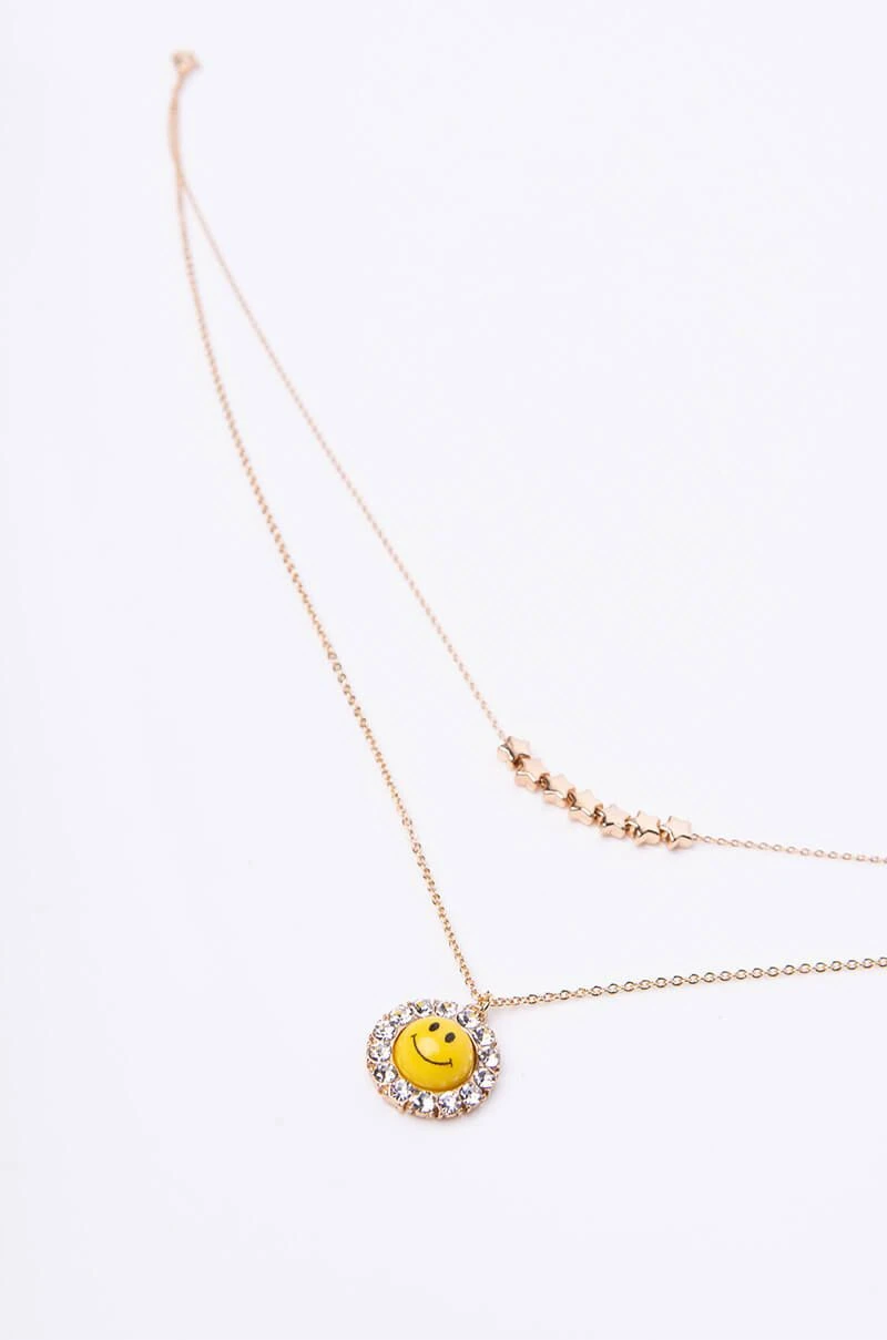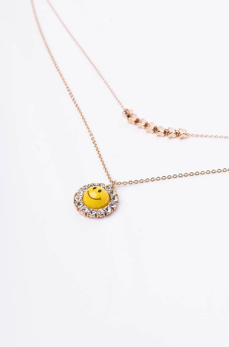 Cβmon get happy! Take a cue from The AKIRA Label Smile Today Layered Necklace. This piece features a faux gold base, layered design, rhinestone embellished smiley face charm, star-shaped accents, and an adjustable lobster claw closure.