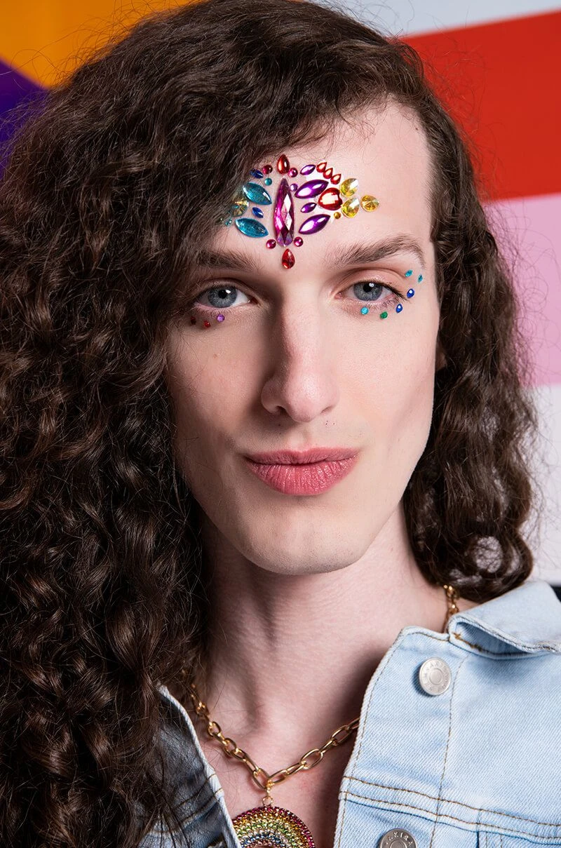 Love is love. Celebrate in style with The Titsy Pride Gem Liner. These glamorous adhesive-back strips frame the lower lash line and outer corners of the eye. Complete with a large rainbow centerpiece.
