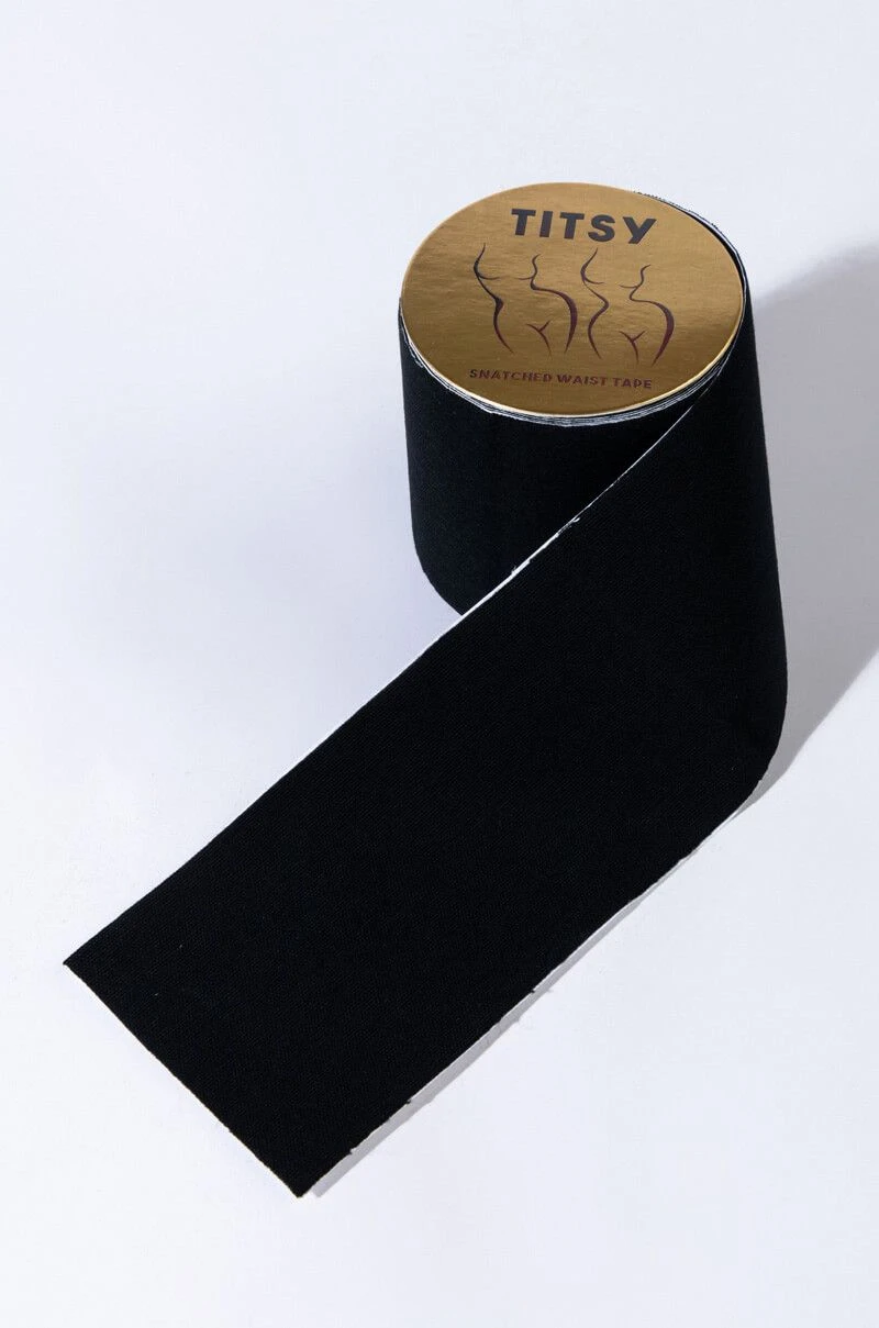 Feel comfortable, confident, and snatched with The Titsy Snatched Waist Tape. This stretchy styling staple cinches your middle and moves with your body the entire night. This thick woven simple-use adhesive body tape will be your secret weapon for that hourglass shape this season.