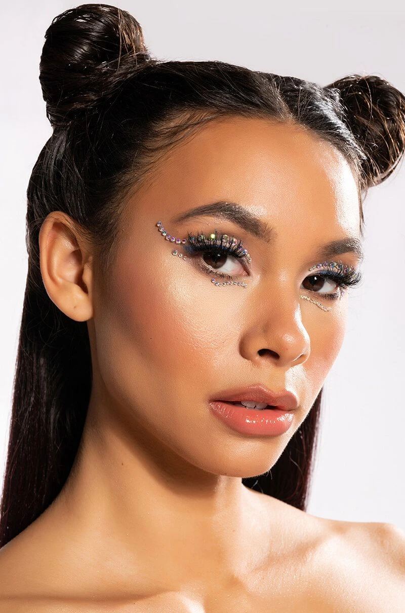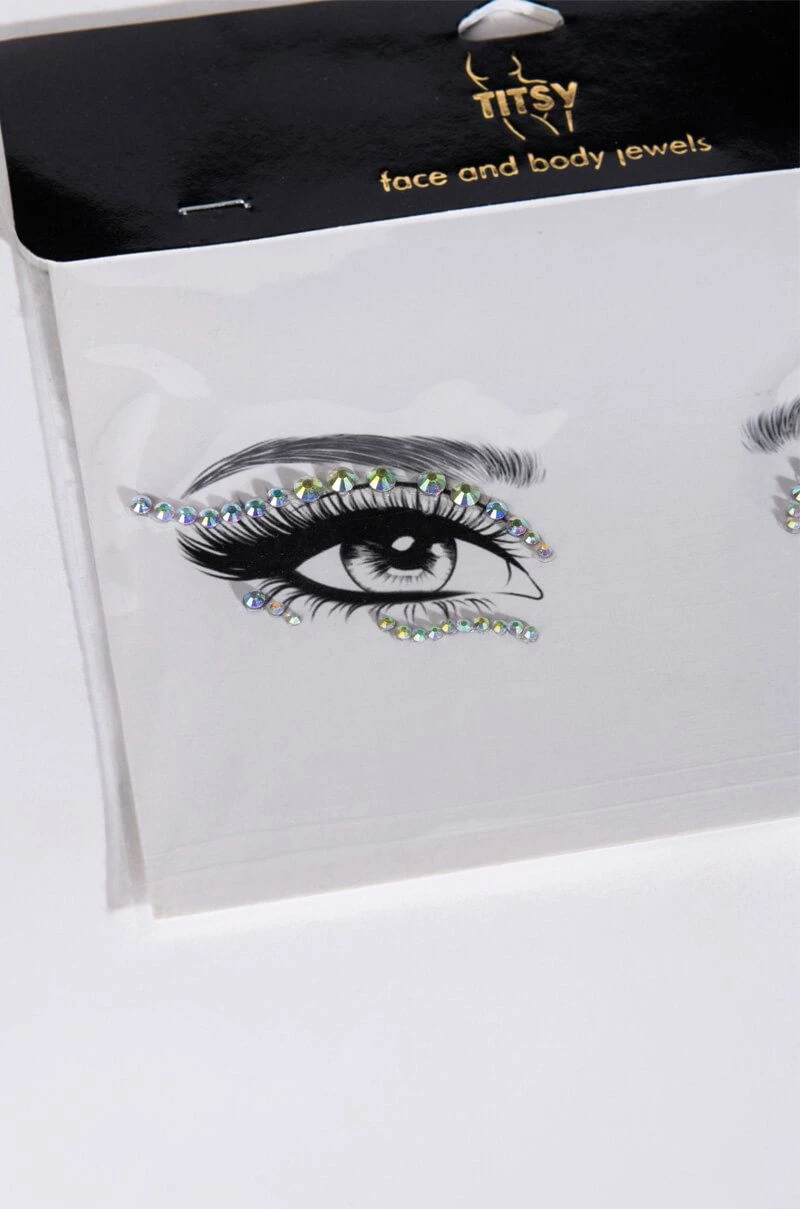 Live out your Euphoria fantasy in the Titsy Team Jules Iridescent Eye Gems! These fashion-forward adhesive-back strips frame the eyebrow and lower lash line with glittering silver rhinestones.